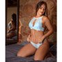 O Conjunto Elegância é um modelo exclusivo! O sutiã de bojo triângulo no estilo biquíni gera muito conforto por não possuir arco, é encapado com renda e possui um decote com fenda que transmite elegância ao corpo da mulher.